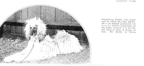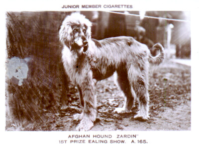 Der ursprüngliche Besitzer Captain John Barff importierte Zardin aus Indien 1907. Zardin gewann in Crufts die Klasse "Fremde Rasse" 1908, 1910 und 1911. Bis 1925 gab es auf der Crufts keine eigene Klasse für Afghanische Windhunde. Zardins Bedeutung liegt in seiner Modellfunktion für den frühen Rassestandard des Afghanen. Angeblich soll zardin sogar der Königin Alexandra im Buckingham Palace vorgestellt worden sein. Später wurde Zardin an den Händler Shackleton verkauft. Zardin zeugte zwar einige Kinder, die jedoch anscheinend alle starben. Weder Zardin noch seine Nachkommenschaft erscheinen in irgendeiner Ahnentafel auf der Welt. |